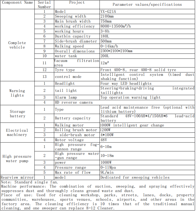 Lugar ng Paggamit: Ginamit para sa Paglilinis ng Workshop, Parks, Streets, Lanes, Docks, Propertycommunities, Warehouses, Sports Venues, School, Paliparan, at iba pang mga lugar sa Thefactory Area. Ang kahusayan sa paglilinis ay 10 beses na sa tradisyonal na manualcleaning, at ang isang walis ay maaaring palitan ang 8-12 na mas malinis